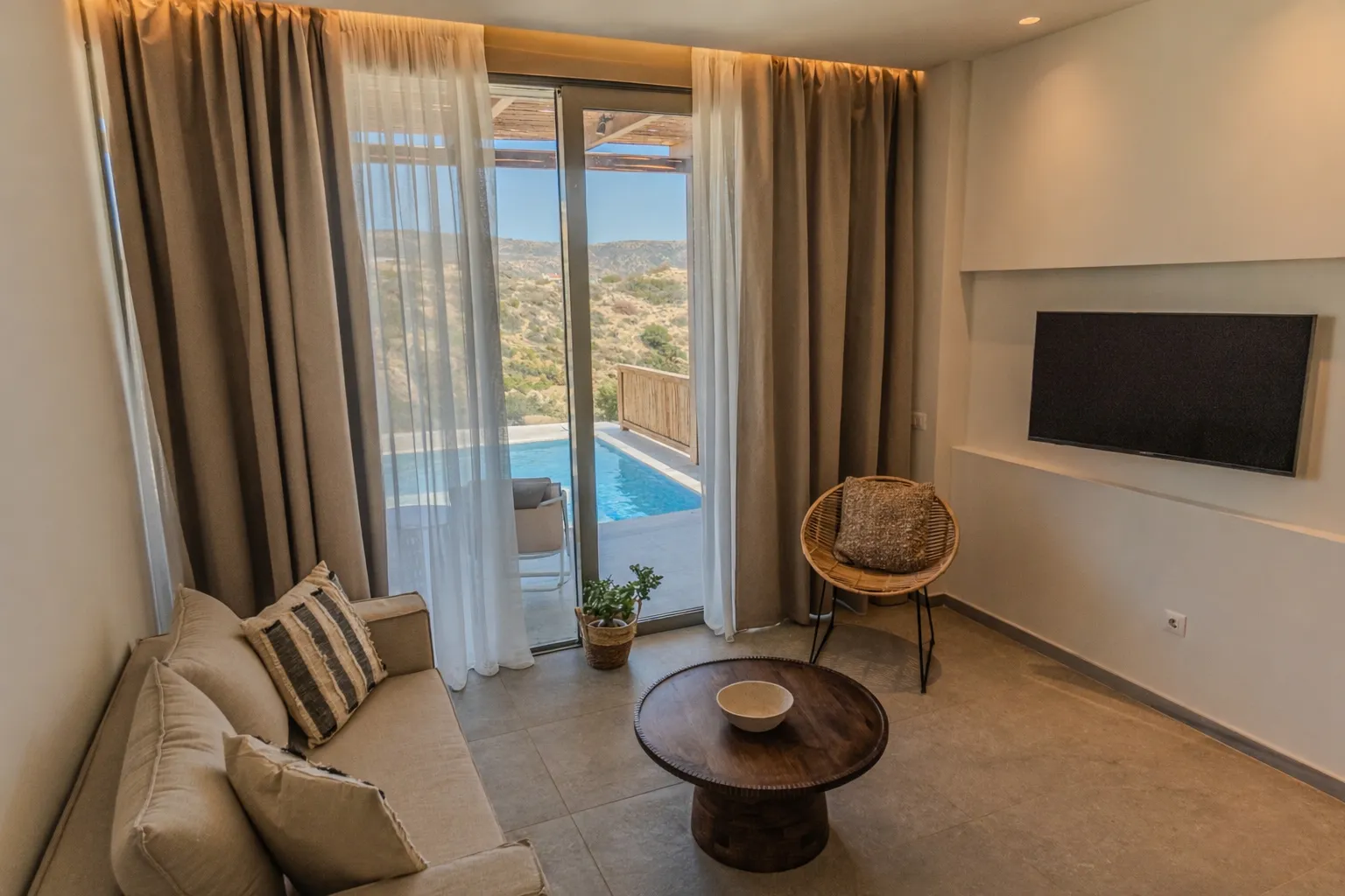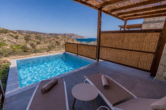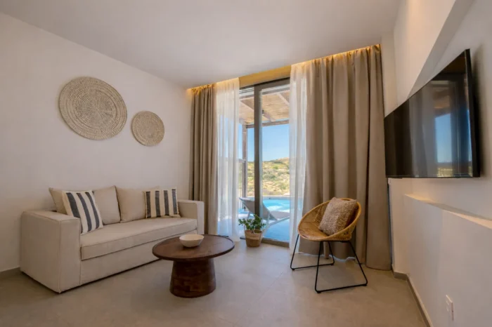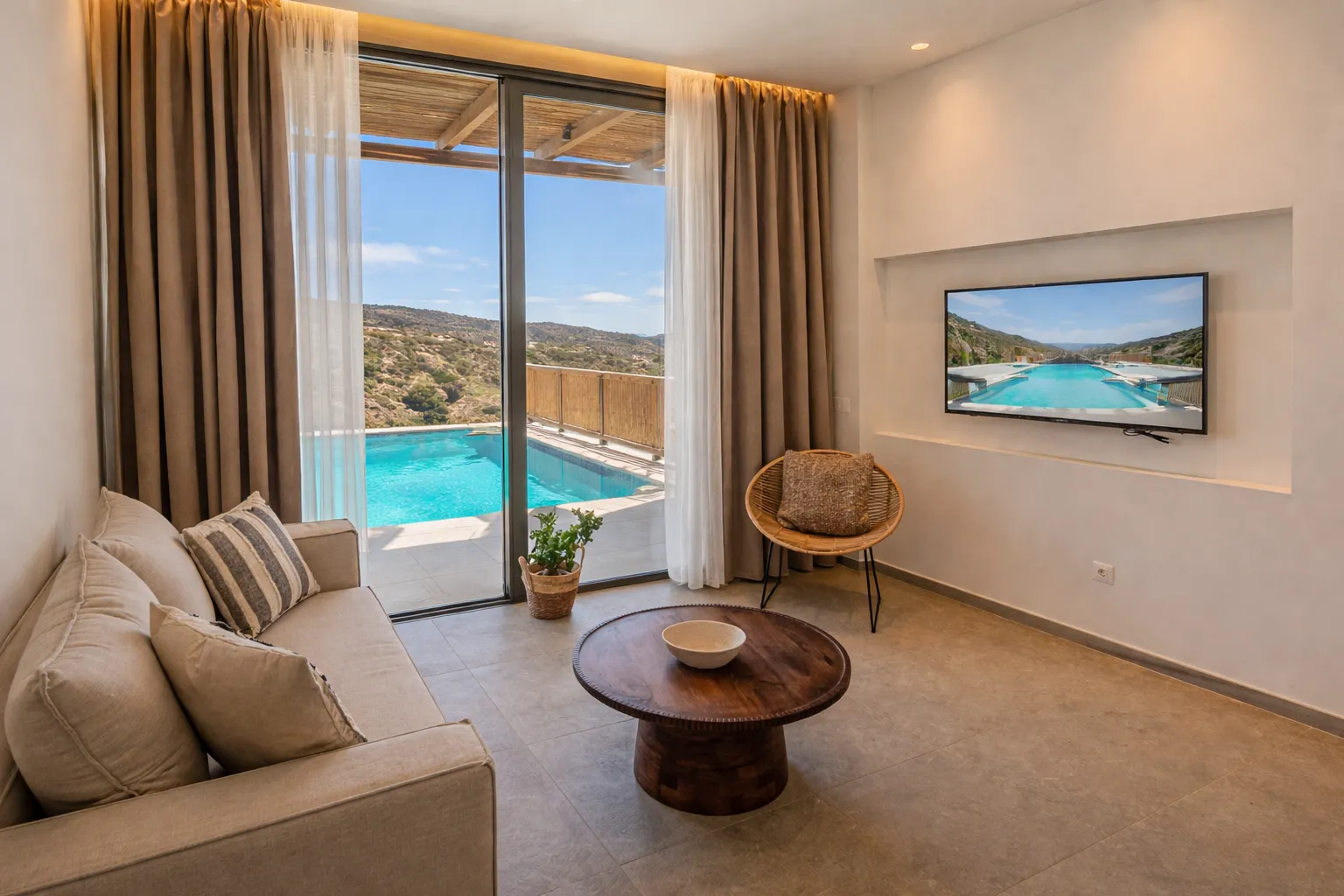 Featuring two bedrooms, two bathrooms, and a spacious living area, these rooms combine comfort and luxury for families or groups of friends. Enjoy a private pool and stunning sea views for unforgettable moments.
