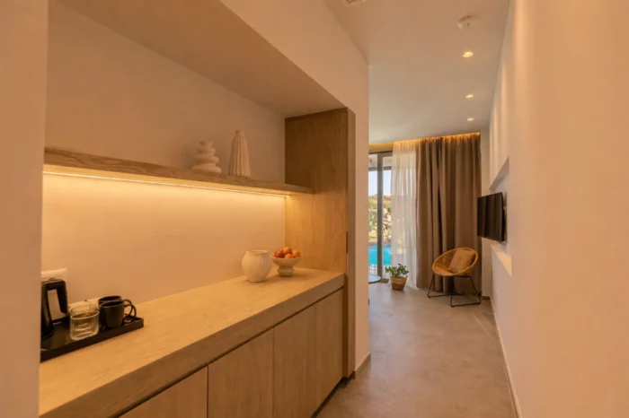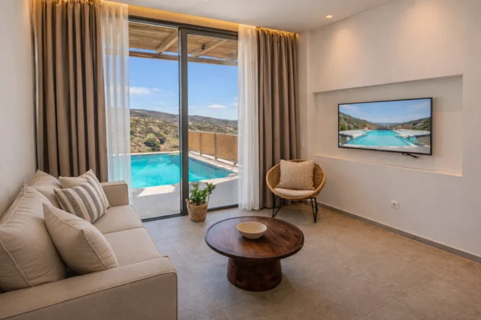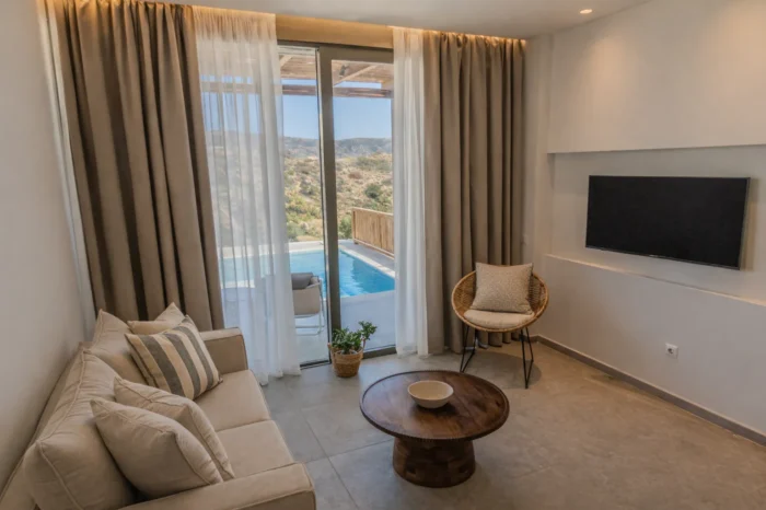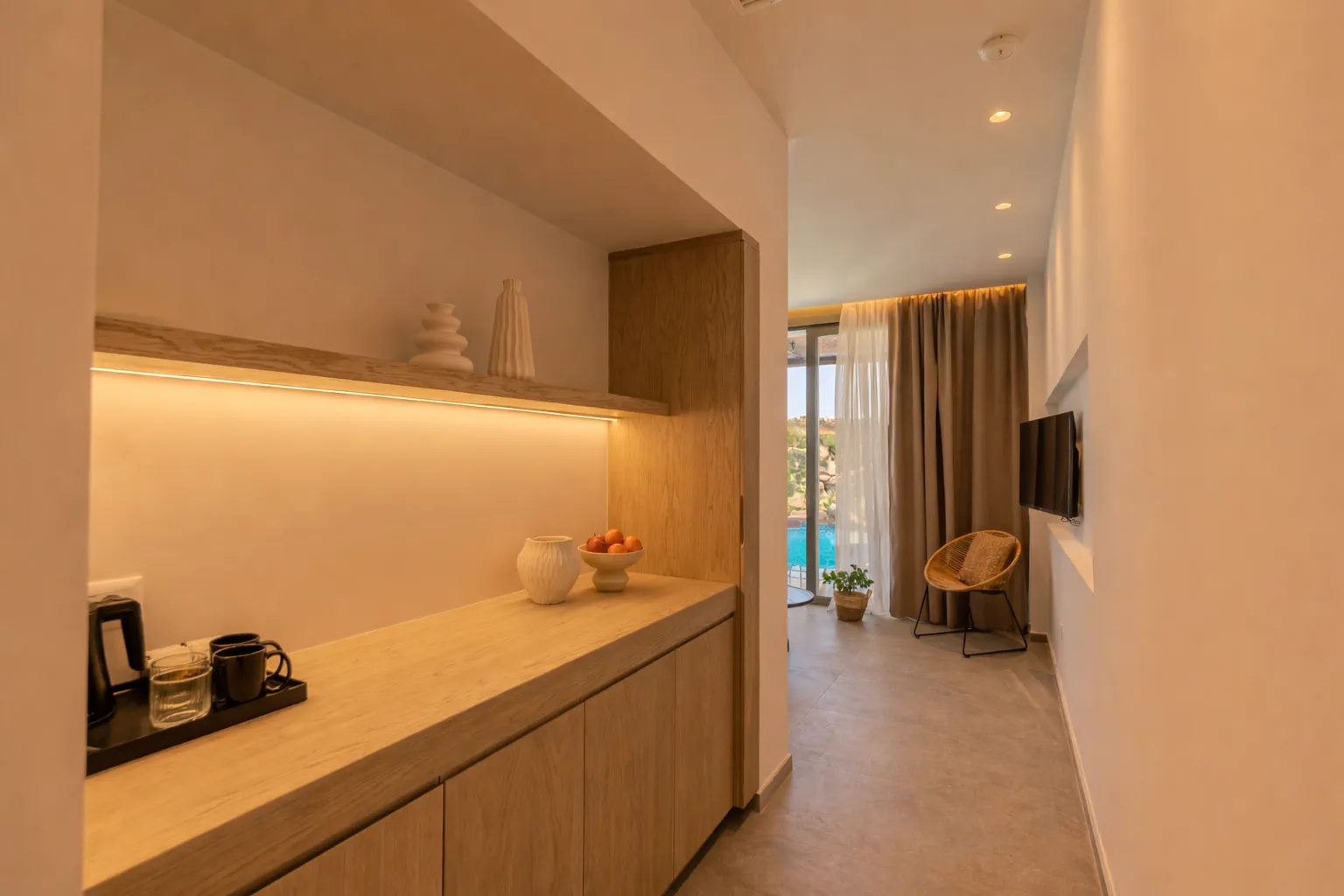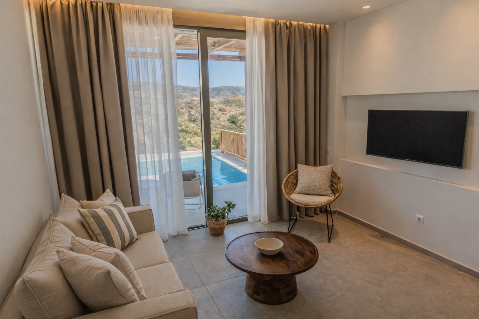 Featuring two bedrooms, two bathrooms, and a spacious living area, these rooms combine comfort and luxury for families or groups of friends. Enjoy a private pool and stunning sea views for unforgettable moments.