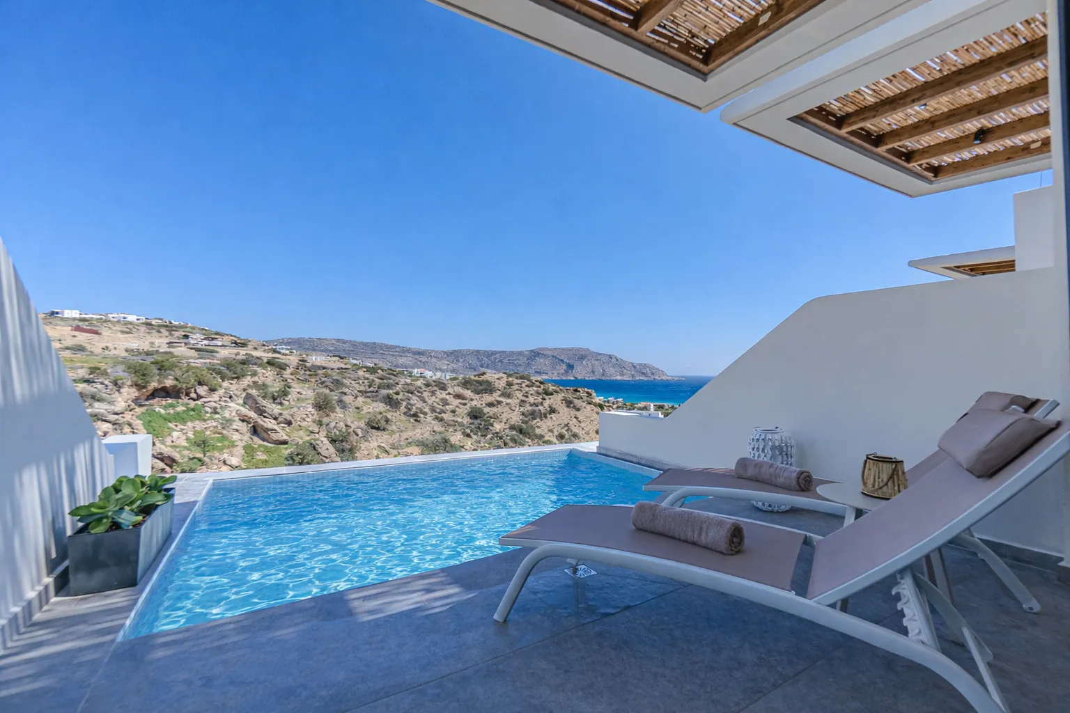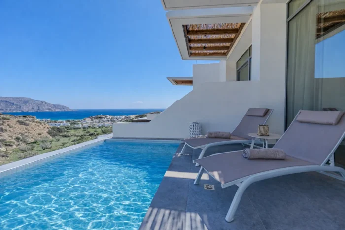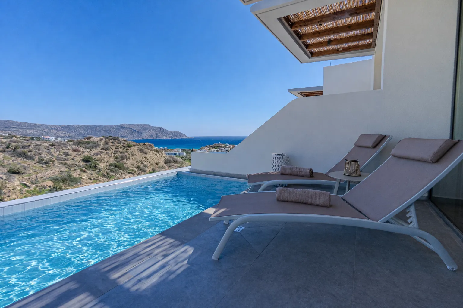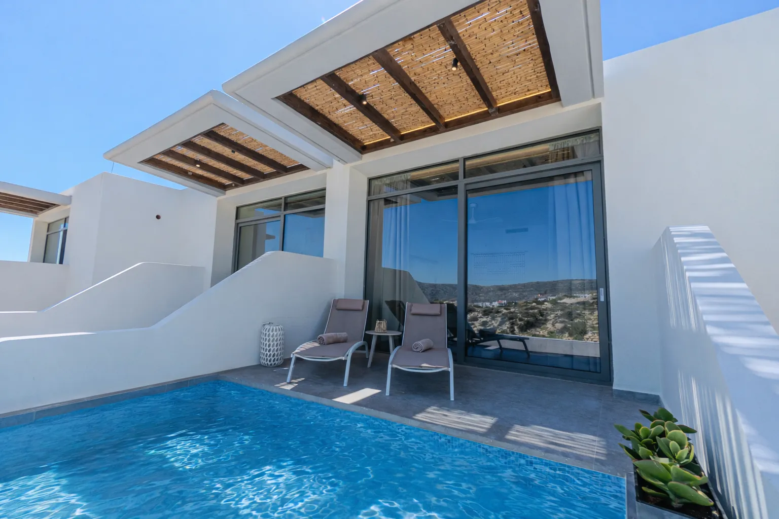 These rooms offer ultimate privacy with a private pool and sea view. Perfect for couples seeking relaxation and luxury in a modern setting.